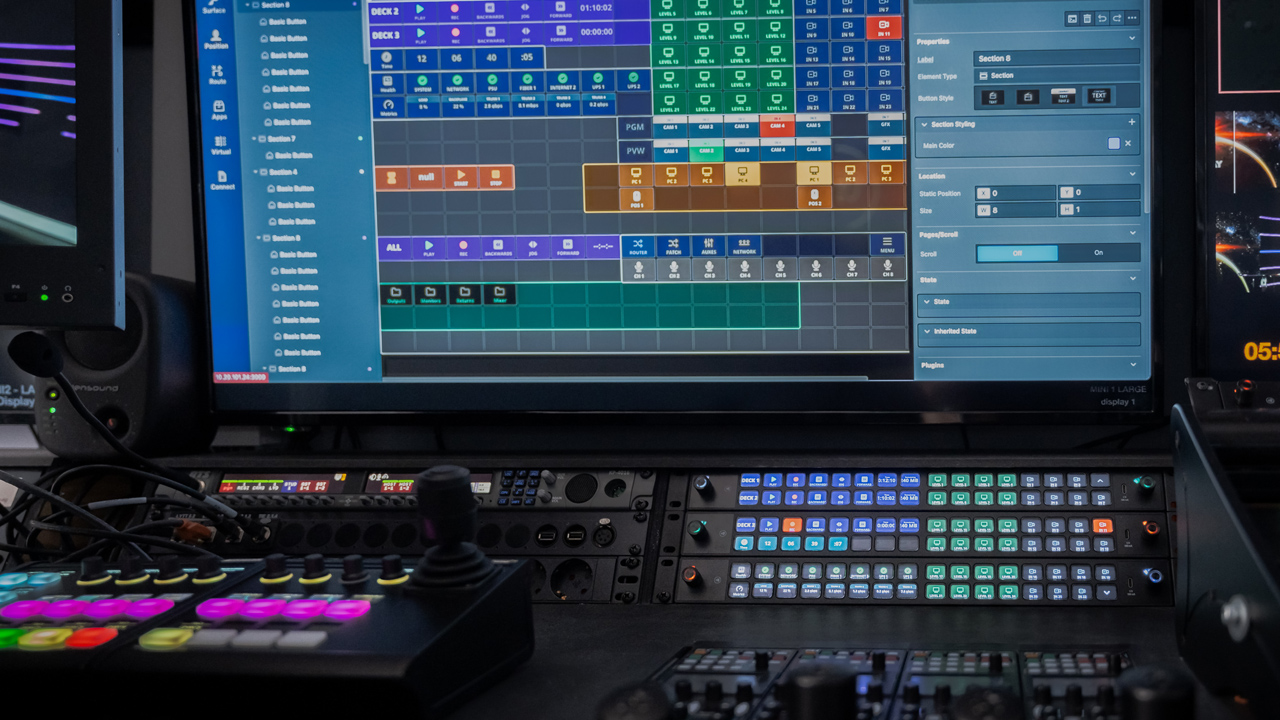 Esto les permite gestionar muchos aspectos de la retransmisión en directo: cambios de escena, repeticiones instantáneas, cortes de cámara dinámicos, gráficos de patrocinadores y animaciones en pantalla asignados a teclas táctiles. Y, gracias a este montaje, en lugar de una sala llena de operadores dando instrucciones, una sola persona puede ejecutar transiciones complejas con solo presionar un botón.