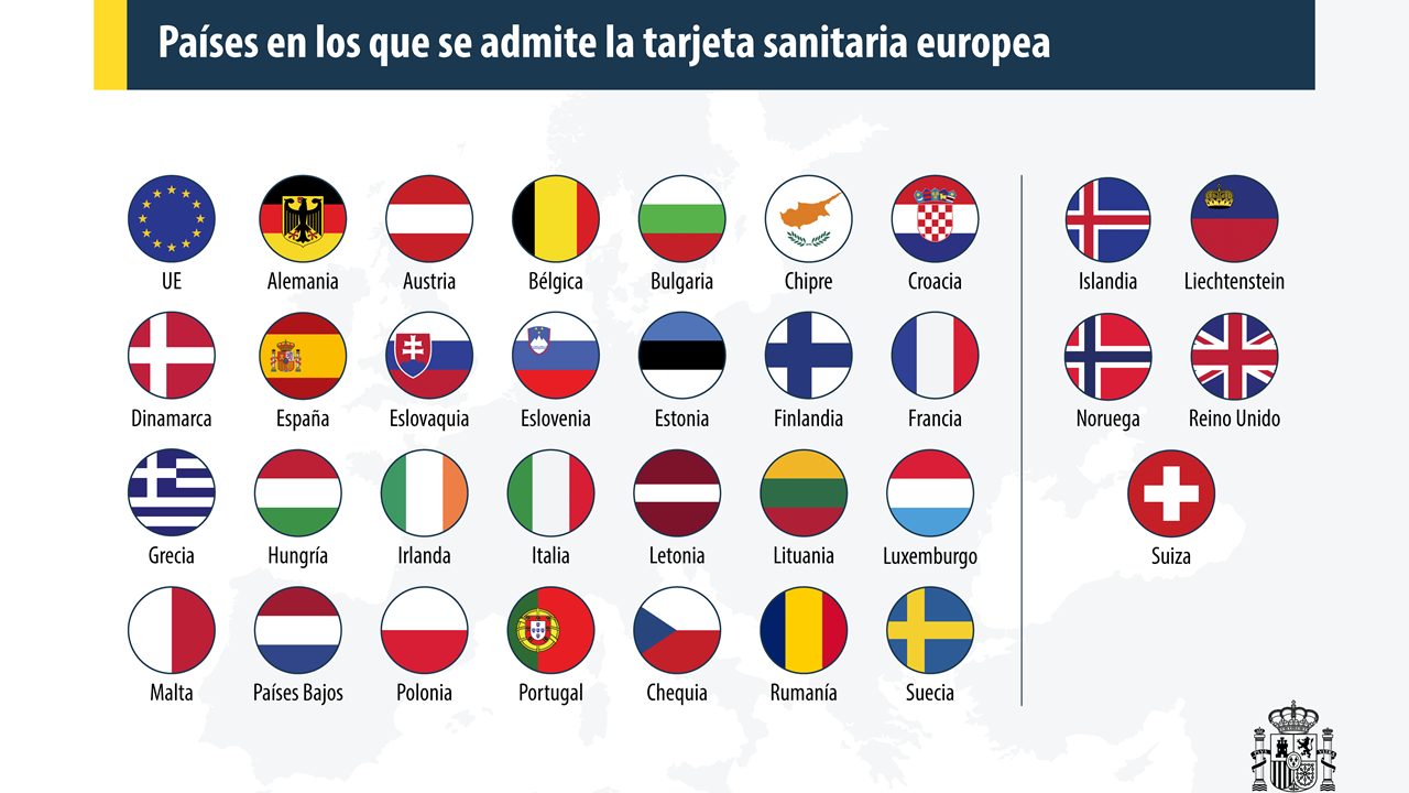 La tarjeta sanitaria europea es un documento personal e intransferible que acredita el derecho a recibir prestaciones sanitarias que resulten necesarias, desde un punto de vista médico, durante una estancia temporal en los veintisiete países miembros de la Unión Europea (Alemania, Austria, Bélgica, Bulgaria, Chipre, Croacia, Dinamarca, Eslovaquia, Eslovenia, Estonia, Finlandia, Francia, Grecia, Hungría, Irlanda, Italia, Letonia, Lituania, Luxemburgo, Malta, Países Bajos, Polonia, Portugal, República Checa, Rumania y Suecia), así como en Reino Unido, Noruega, Liechtenstein, Islandia y Suiza.