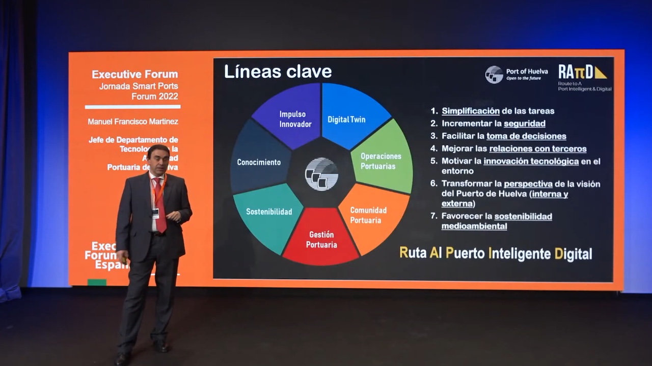Algo menos crítico, pero sin eludir igualmente la responsabilidad con el cliente, se mostró Manuel Francisco Martínez, Jefe de Departamento de Tecnología de la Autoridad Portuaria de Huelva, quien confesó que la digitalización de su puerto “fue un proceso muy rápido” vehiculado desde un plan llamado, precisamente, RAPID (Ruta AI Puerto Inteligente Digital), que cuenta con 7 objetivos: